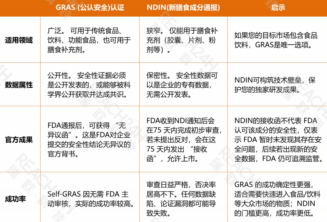 跟着全球大健康财产的兴旺成长,越来越多的中国食物原料企业将目光投向了美国市场。然而,面临美国食物药品监视办理局(FDA)严酷且复杂的监管系统,良多企业正在“出海”的第一步就犯了难:这两个概念看似类似,实则正在合用范畴、申报流程、数据要求及市场策略上有着天地之别。选错了径,不只可能会华侈高额的申报费用,更可能错失抢占市场的黄金窗口期。瑞欧科技做为深耕全球食物原料合规范畴的专业机构,深谙FDA监管逻辑取申报实操痛点,连系申报案例的经验沉淀,为您深度分解GRAS取NDI的异同。GRAS (Generally Recognized as Safe)–“平安”:指通过专家的科学评估,或基于1958年前的持久利用经验,被为正在预期用处下是平安的物质。上述(A)、(B)、(C)、(D)或(E)项中所述任何成分的浓缩物、代谢物、构成成分、提取物或组合。“新”——严酷的时间边界:若是申报的成分被FDA鉴定为正在1994年之前已正在美发卖,FDA同样会受理该NDI传递。“炊事成分”——严酷的身份属性:申报的物质必需严酷合适定义的(A)到(F)类别。FDA审查的第一步就是“定性”。若是申请的物质不具备上述炊事属性,FDA会以“不合适炊事成分定义”为由间接受理。源自1958年的《食物添加剂批改案》。其立法初志是为了“宽免”那些正在1958年前已有持久、平安利用汗青的常规物质(如盐、醋、小苏打等),使它们不必颠末冗长的食物添加剂审批。其焦点正在于“汗青共识”和“科学共识”。源自1994年的《炊事弥补剂健康取教育法》。其布景是其时炊事弥补剂财产兴旺成长,设立了这条特地针对“新”炊事成分的上市前通知径。简单来说,GRAS降生于“食物”范畴,而NDI降生于“炊事弥补剂”范畴,这是两者一切差别的根源。无论是GRAS仍是NDI,对消费者是平安的,两者都需要供给包罗化学、出产工艺、杂质阐发、毒理学研究、量评估等正在内的一整套科学来支持其平安性结论。